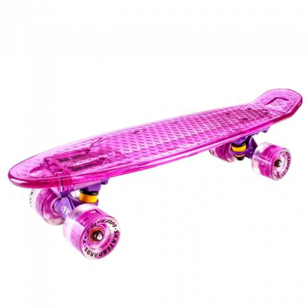 Скейтборд пластиковый Transparent 22 light розовый - вариант уникального скейтборда, представленного в нескольких расцветках. Удивительная лёгкость и прочность материала поражает, ведь прозрачность - символ хрупкости. Выдержка до 100 кг и достаточно высокая скорость при катании благодаря подшипникам  ABEC 7.  Transparent 22 light розовый отлично подойдёт как для новичков, так и для профессиональных райдеров.