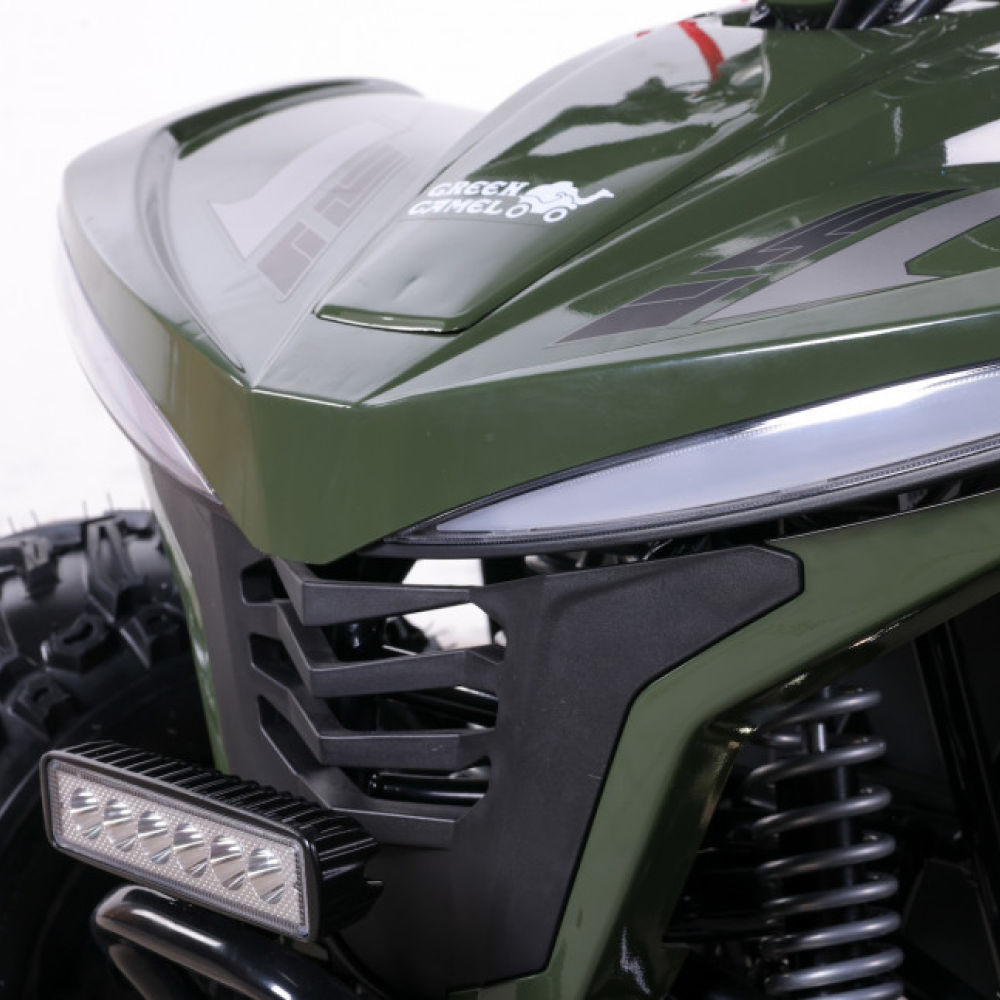Электроквадроцикл GreenCamel Гоби K90 (48V 750W R7 Дифференциал) Tao LUX Зеленый - это великолепный выбор для молодых авантюристов в возрасте от 5 до 10 лет. С мощностью в 750 Ватт, этот квадроцикл способен развивать скорость до 35 км/ч, предоставляя вашему ребенку незабываемые моменты радости и веселья.