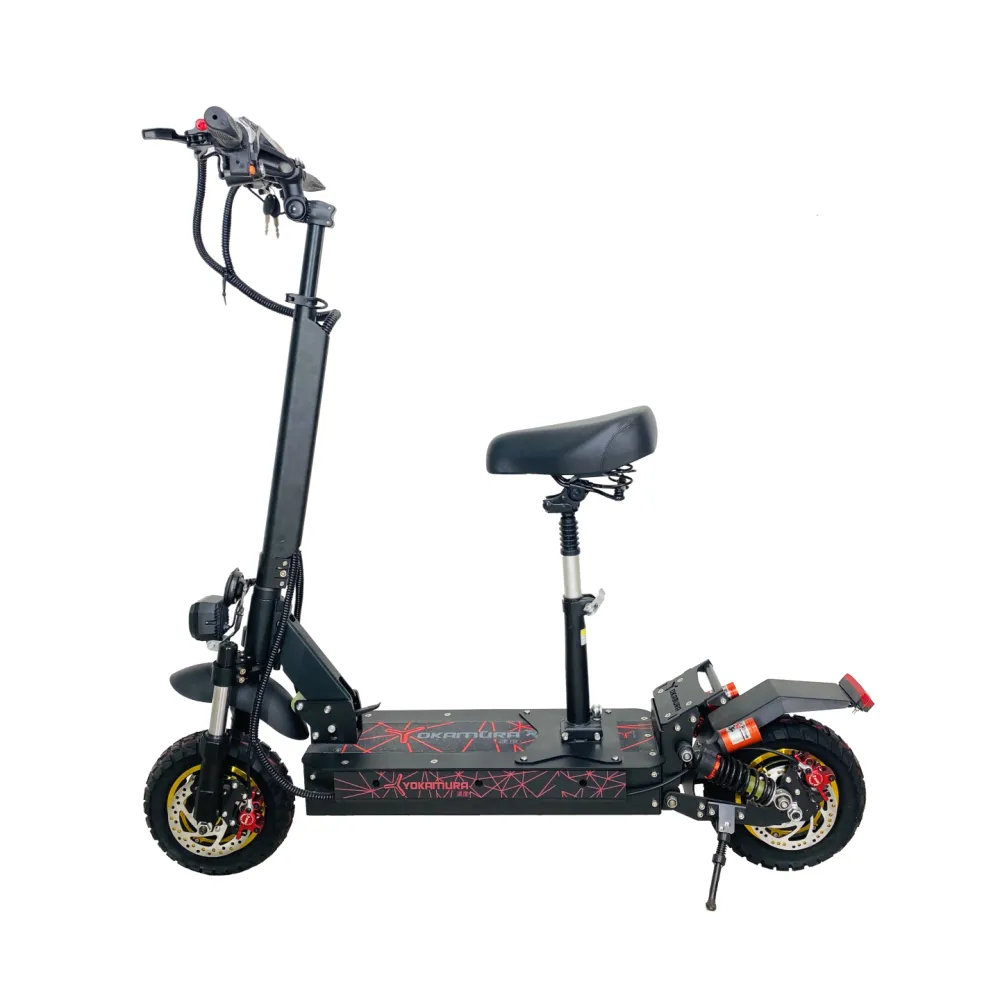 Электросамокат YOKAMURA RX2 надежный транспорт от японского производителя. Данная модель имеет полный привод, достаточно мощная и подъемистая. Полная мощность двух мотор-колес 2400 Вт. Такой электросамокат отлично подойдет для движения по ровным городским дорогам и по местности со сложным рельефом. Он легко преодолеет подъемы, одинаково уверено двигается по дорогам с разным покрытием.