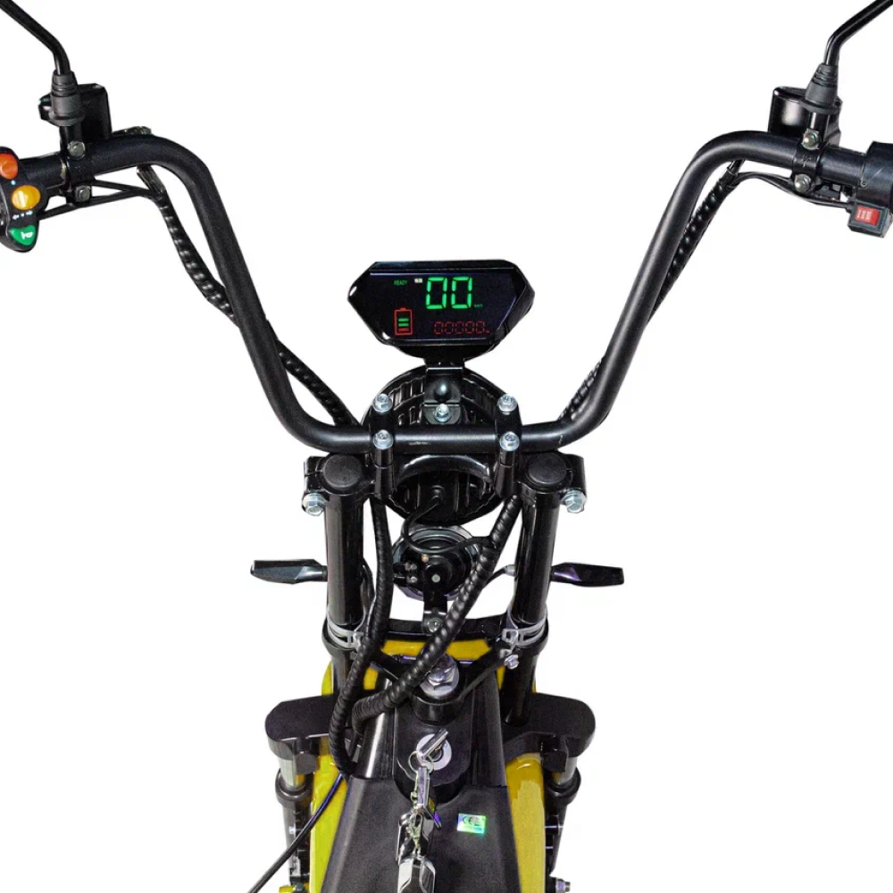 Электроскутер Minako Rex Citycoco 2000w - это качественный и удобный электроскутер с двумя колесами и яркой желтой расцветкой. Он имеет внушительные характеристики, которые сделают вашу поездку комфортной и безопасной.