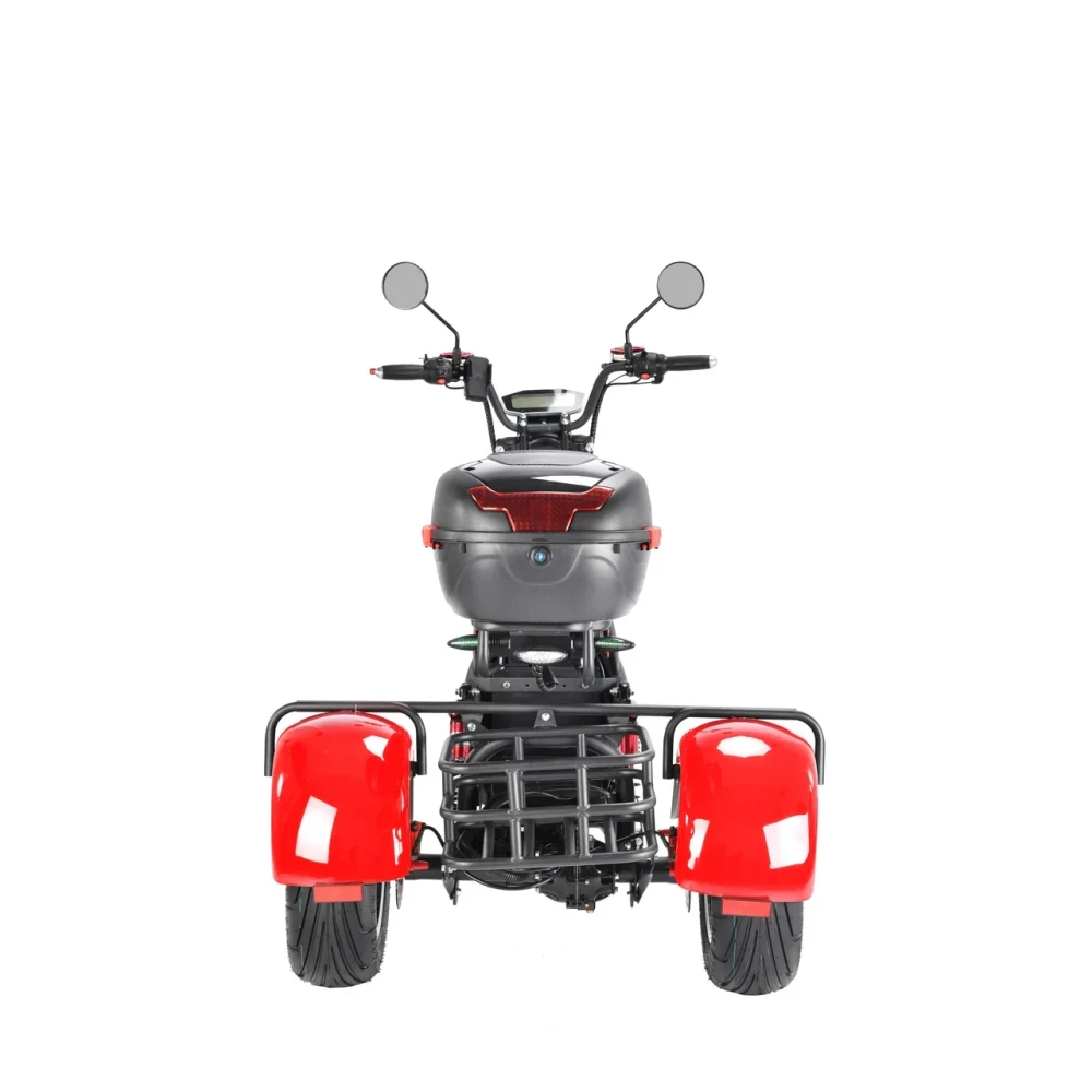 Трехколесный скутер CityCoco WS-Pro 3000W Trike+ красный - быстрый городской транспорт с литыми дисками и широкими колесами.