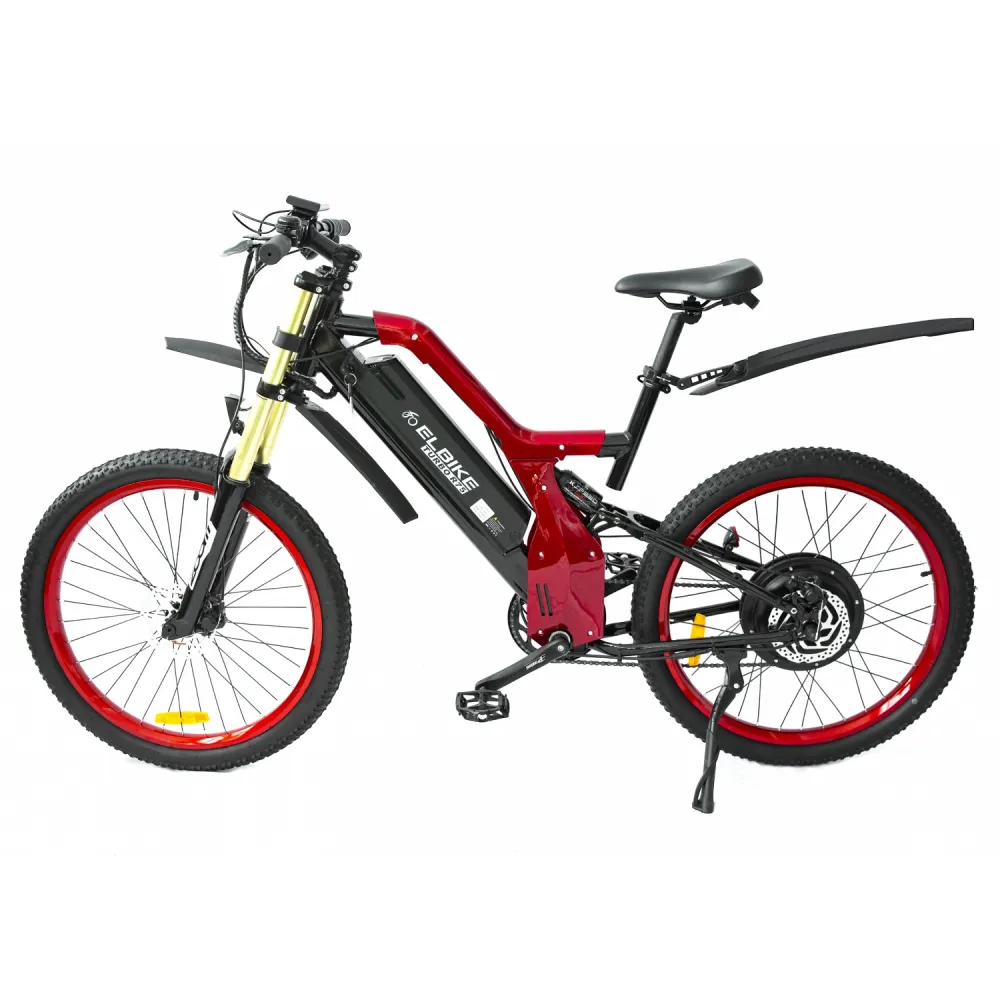 Представляем вашему вниманию электровелосипед Elbike TURBO R65 премиум класса. Значительный размер колёс в 26 дюймов, яркий красный цвет, мощность мотора 500 Вт. Электровелосипед буквально кричит о том, что готов ездить в экстремальных условиях.