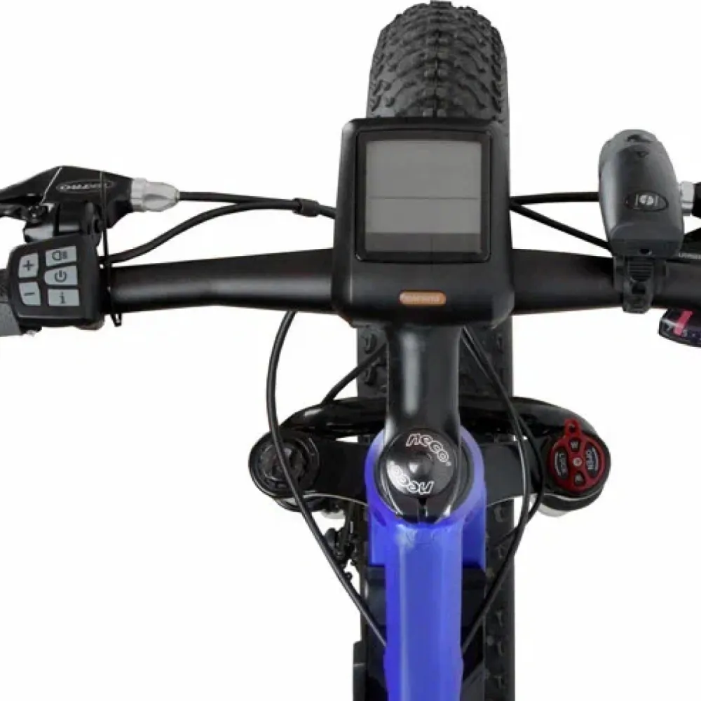 Двухподвесная алюминиевая конструкция рамы долговечная и надежная. Оснащена вилкой MOZO,FT-40 и шифтерами Shimano M310. Максимальная скорость при мощности мотора 500 Вт составляет 35 км/час. Емкости аккумулятора хватает на 45 км пробега. Характеристики считаются лучшими в своей линейке. Основной функционал размещен на видимой части руля, не отвлекает райдера при езде на длительные расстояния. Наличие бортового компьютера позволяет держать под контролем скоростные параметры, степень зарядки аккумулятора и протяженность пути.