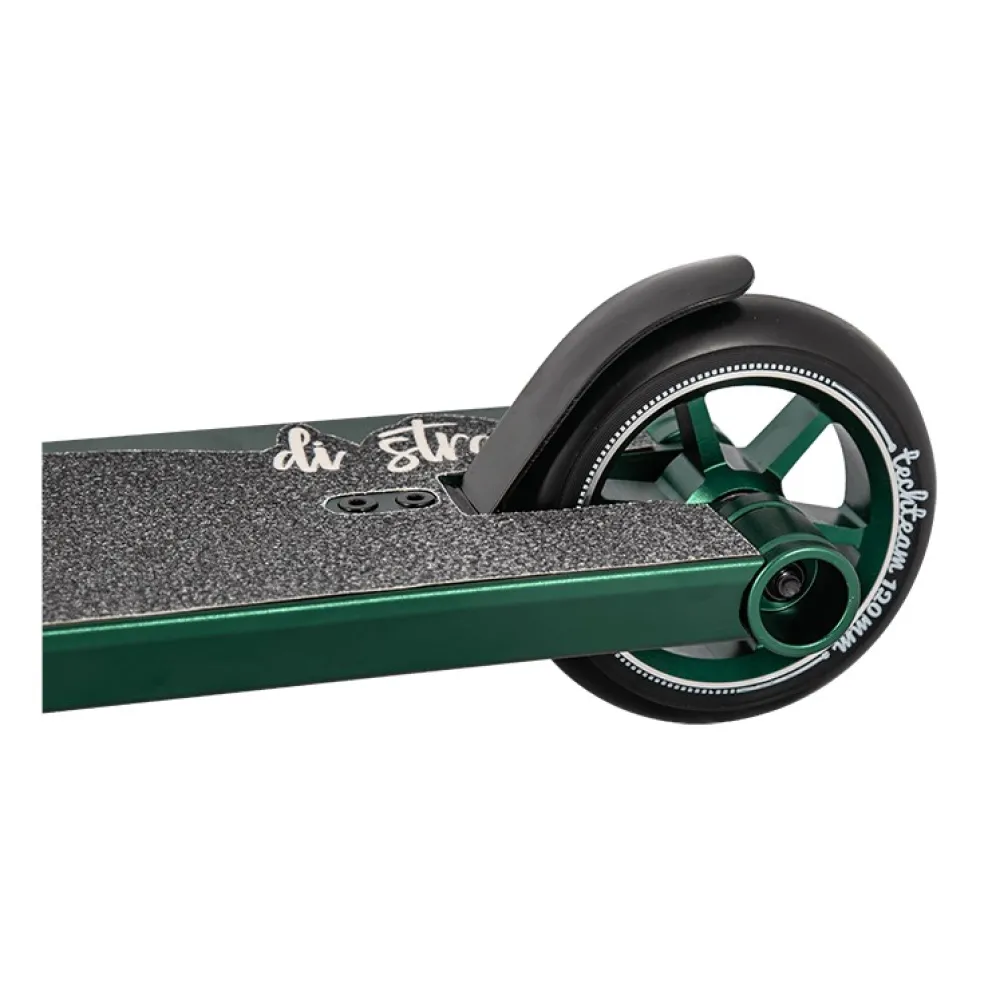 Вилка у данного самоката сделана из фрезерного алюминия, рулевая у самоката интегрированная на промышленных подшипниках. Компрессия у Di Strada с мощным четырехболтовым хомутом. Благодаря этому самокат очень прочный.