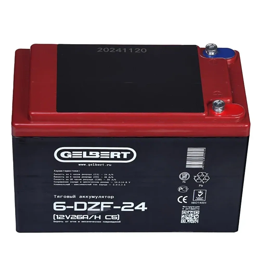 Тяговый аккумулятор Rutrike Gelbert 6-DZF-24 (12V26A/H C5) – это современное и надежное решение для грузовых трициклов и складской техники. С напряжением 12 В и ёмкостью 26 А·ч по схеме С5, данный аккумулятор гарантирует длительный срок службы и стабильное питание даже при интенсивном циклическом использовании. Его компактные размеры – 185 мм в длину, 105 мм в ширину и 130 мм в высоту, а также вес 6.95 кг позволяют легко интегрировать его в конструкцию различной техники. Продукт, входящий в серию DZF, отличается высокой эффективностью, надежной конструкцией и продуманной эргономикой, что делает его оптимальным выбором для профессионалов, ценящих качество и долговечность. Rutrike Gelbert 6-DZF-24 успешно справляется с задачами по тяговому питанию, обеспечивая бесперебойную работу оборудования в самых суровых условиях эксплуатации, будь то транспортировка грузов или работа в условиях склада. Благодаря инновационным технологиям производства и строгому контролю качества, этот аккумулятор заслуживает доверия и является надежной опорой для любой техники, требующей стабильного и мощного источника энергии.