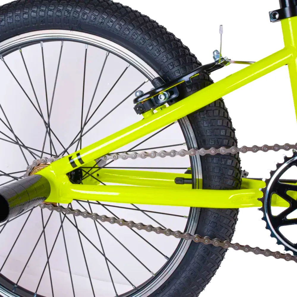 Спортивный велосипед имеет небольшой вес (12 кг), оснащен качественной начинкой, способной выдерживать максимальные нагрузки. Выглядит стильно и современно. Дизайн подчеркивает предназначение, Яркие цветовые оттенки делают тс заметным. Конструкция изготовлена из ударопрочного надежного материала, не теряющего первоначальные характеристики при эксплуатации в жестких условиях. Рама – современная, бренда BMX размером 18,7 дюймов. 20-дюймовые колеса устойчивые, послушные. При эксплуатации модели важно соблюдать рекомендации производителя. Это позволит использовать велосипед по максимуму, сделает прыжки безопасными и качественными. Техника укомплектована 4 пегами, вместе с ними прилагается инструкция производителя.